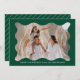 Send festive holiday greetings to your friends and family with this trendy holiday photo card! The simple Christmas card displays your horizontal photo framed in a wavy, dark green retro-style frame. Personalise the minimal holiday card with a custom greeting (shown as Merry Christmas) and your family name in white lettering. The card reverses to display a green and white diagonal stripe pattern.