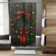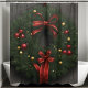 Festive Green Wreath Red Bow Christmas Shower Curtain