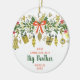 Festive Greenery Personalised 1st Xmas Big Brother Ceramic Ornament. Personalise with your custom information on both front and back.