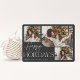 Our festive and elegant holiday card design is the perfect way to show off three of your favourite family photos. Horizontal or landscape orientated design features "Happy Holidays" in white typography and hand lettered script, with your family name beneath on a black background.