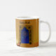 Happy Diwali illustration: red diya (a cup-shaped indian oil lamp) in front of an indian ornamental window with fireworks outside.