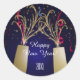 Happy New Year! 2012! Stickers with champagne glasses bursting with glittery swirls, confetti, stars and ribbons.