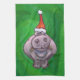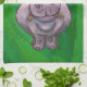 Festive Hippo On Green Tea Towel
