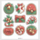A collection of beautifully designed Christmas cookies featuring holly, bells, bows, and candy canes.