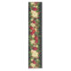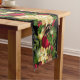 This table runner is shown with a black background and has a pretty festive holiday garland print.