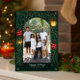 Send warm wishes this holiday season with a beautiful family Christmas card featuring a festive green and gold design, glowing lanterns, and cheerful holly details. Perfect for sharing love, joy, and Christmas spirit with friends and family. Personalise with your own photo and greeting for a heartfelt keepsake.