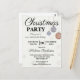 This cute and modern style Christmas Party invitation Postcard design features a soft white background with hanging Christmas ornaments and a pretty snowflake pattern. Personalise with all of your holiday event information.