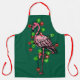 Festive holiday pink flamingo, red green twinkle apron