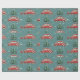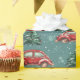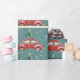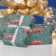 Brightly coloured wrapping paper showcasing adorable red cars and decorated Christmas trees against a snowy background, perfect for adding holiday cheer to your gifts.
