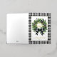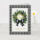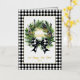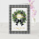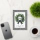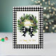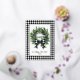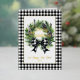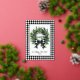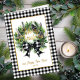 Elegant nostalgic watercolor black and white gingham check beribboned pine and berries holiday wreath "Merry Christmas" non-photo greeting design with coordinating back pattern design. All text is editable.