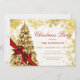 Festive Holiday Xmas Pine Tree, Gold & Red Ribbon Invitation