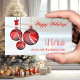 Festive and original 3D art business gift certificate template for the Holidays and Christmas season, featuring three Christmas ball ornaments in bright red and white. The two top front texts are images and can be deleted if you prefer custom text.