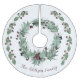 Festive Holly and Ivy Wreath Christmas Tree Skirt designed with Green and Plum watercolor floral design. The text includes: your Family Name on a white background. To personalise, simply insert your text into our easy template, replacing the sample name.