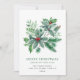 Festive Holly Berry Branch Christmas Greeting Holiday Card.