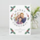 Festive Holly Botanical Greenery Photo Christmas Holiday Card.