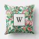 Festive Holly Christmas Monogram Throw Pillow