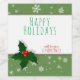 Stylish and colourful wine label for Christmas holiday time with a Happy holidays wish. The label has white snowflakes on a green background and a beautiful holly tree berry. The text is in green and red colours on a white background. Personalise the label with your text, greeting and name. Great as a Christmas present for your friends, family, co-workers, ...