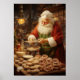 Traditional Christmas wall art design design featured Vintage Santa making cookies in kitchen.