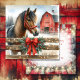 Festive Horse and Red Rustic Barn Christmas Holiday Card