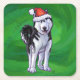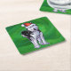 Festive Husky in Santa Hat on Green Square Paper Coaster