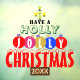 Festive typography Christmas tree with yellow stars.  Jolly is written inside red, pink, gold, blue ornaments.  Personalise Year on bottom of brown tree trunk, or delete Year text box.  Have A Holly Jolly Christmas is written in bright fun lettering.  Original Artwork Design by TamiraZDesigns.