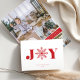 Festive typography-based Christmas card features "JOY" on the front in vibrant red retro-style letters with a snowflake standing in for the "O." Add four favourite family photos to the inside in a collage layout, and personalise with a custom message and signature.