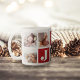 Customise this classic white mug with seven of your favourite Instagram or square photos in a gridded collage layout. Add treasured photos of family, children or grandchildren to create a sweet keepsake and a one of a kind Christmas gift. "JOY" is interspersed with your photos in retro white typography on festive red, with a white snowflake illustration standing in for the "O."