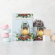 A soft watercolor lantern glows gently from within, nestled in holly and snow-kissed twigs. Against a background of pale icy blue, this simply beautiful peaceful winter design evokes the warmth of candlelight and the quiet charm of holiday evenings. Perfect for those who love vintage Christmas aesthetics, cozy cottage vibes, and nature-inspired art when wrapping their Christmas and winter holiday gifts.
