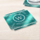 Festive Light Blue Foil Snowflakes Monogram Name Paper Coaster