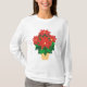 Get in the holiday mood with this white long-sleeved hoody, with a pot of bright red poinsettias, from a handpainted paper collage by Judy Adamson.
