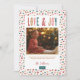 Modern custom printed Christmas photo cards with a simple DIY template for customisation. This festive design features colourful typography and a cute abstract dot background in muted red, green, gold and pink colours. Add your family photos, personal greeting, names and the year. Use the design tools to edit the fonts and colours. Reverse side has space to add more photos and text.