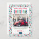Modern custom printed Christmas photo cards with a simple DIY template for customisation. This festive design features colourful typography and a cute abstract dot background in blue, red, green and aqua colours. Add your family photos, personal greeting, names and the year. Use the design tools to edit the fonts and colours. Reverse side has space to add more photos and text.