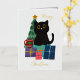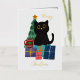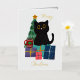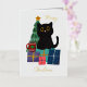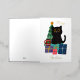 Festive Merry Christmas Cute Black Cat Coffee Art Foil Greeting Card