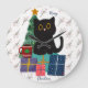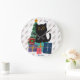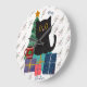 Festive Merry Christmas Cute Black Cat Coffee Art Large Clock