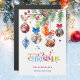This is a bright, colourful and unique holiday greeting featuring four festive Christmas ornament-shaped photo templates hanging from a watercolor pine branch. Also featured is a cheery multicolored Merry Christmas text graphic in a custom decorative font. Includes editable text fields.