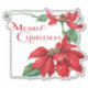 Colourful red and green holiday poinsettia floral with custom decorative Merry Christmas greeting in unique red typography on blank white label with matching green border.