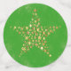 This table confetti has large circles with a large gold stars made of multiple little gold stars on a dark green background with gold flecks. The medium circles are dark green with gold Merry Christmas text and gold flecks. The small circles are dark green with gold flecks and a vibrant red star.