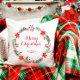 Add holiday charm with this festive merry Christmas wreath family design, perfect for seasonal decor enthusiasts. The design features a green wreath with red flowers and berries, encircling red "merry Christmas" text and a family name below. Ideal for cosying up your living space during the holidays or gifting to loved ones for a warm, festive touch.