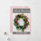 Festive Merry Christmas Wreath Rose Gold Glitter Holiday Card