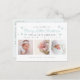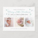 Chic festive modern birth announcement holiday postcard features "Merry Little Christmas" in teal baby blue script typography, birth stat and 3 or your favourite photos with little snowflakes.