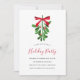 Whimsical and festive Christmas party invitation template card featuring a cute illustration of a mistletoe in red and green. Customise this card by adding your own party information. Celebrate the holiday season with close ones with this fun invite!