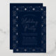 Elegant holiday party invitations featuring your party details in silver foil lettering framed by a silver foil snowflake pattern on a navy background. The snowflake holiday party invitations can be used for a variety of holiday parties. Just change the event name by using the templates.