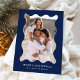 Festive Navy Retro Photo Frame Merry Christmas Holiday Card