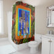 Afrocentric female silhouettes, Celebration art print, Nubian home décor, Ethnic shower curtain, layered festive colours, Geometric motifs, Black heritage artwork, Cultural silhouette design, Bold Afro design, African-inspired bath accent, Tradition meets modern elegance, Indigenous beauty art, Vibrant tribal pattern, Redman4u2 collection,