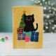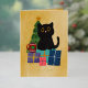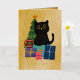 Festive Orange Gold Christmas Black Cat Coffee Foil Holiday Card