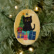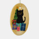 Festive Orange Merry Christmas Black Cat Coffee Ceramic Tree Decoration