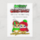 Cute holiday owls cuddling on a tree branch. Affordable Christmas postcard with hand drawn artwork.