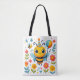 A cheerful tote bag featuring a cartoon bee with a party hat and balloon, surrounded by colorful flowers and confetti. Perfect for birthdays, kids’ parties, or anyone who loves playful and vibrant designs.