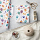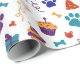 Make your furry friend’s milestone extra special with this delightful pet anniversary wrapping paper. The design features a charming, scattered pattern of colorful paw prints, tasty cupcakes, festive balloons, and party hats set against a clean white background. Whether you're celebrating an "adopt-a-versary" or a traditional birthday, this high-quality gift wrap adds a touch of whimsical joy to any pet-themed present.
