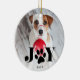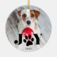 Give your furry friend a special place on the tree this Christmas with our Festive Paws pet photo ornament. Design features your favourite dog or cat photo with "JOY" overlaid in black type. A sweet paw print illustration takes the place of the "O." Personalise with the year beneath. Ornament reverses to reveal a festive Nordic sweater pattern in black and white.